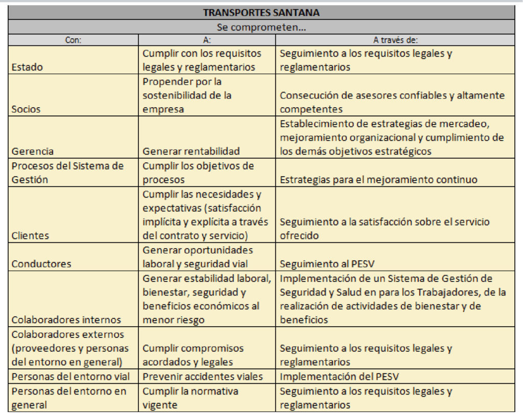 La empresa TRANSPORTES SANTANA TRIÁNGULO DEL CAFÉ S.A.S. Es una empresa legalmente constituida, autorizada y certificada por el Gobierno Nacional a través de la Superintendencia de Puertos y Transporte. Con orgullo, TRANSPORTES SANTANA TRIÁNGULO DEL CAFÉ S.A.S. Se dedica a la prestación del servicio de transporte terrestre automotor bajo las siguientes modalidades: